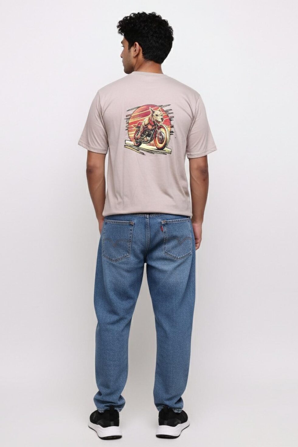 A playful dog-on-a-bike illustration takes over the back, adding humor, color, and streetwear attitude to your everyday fit.