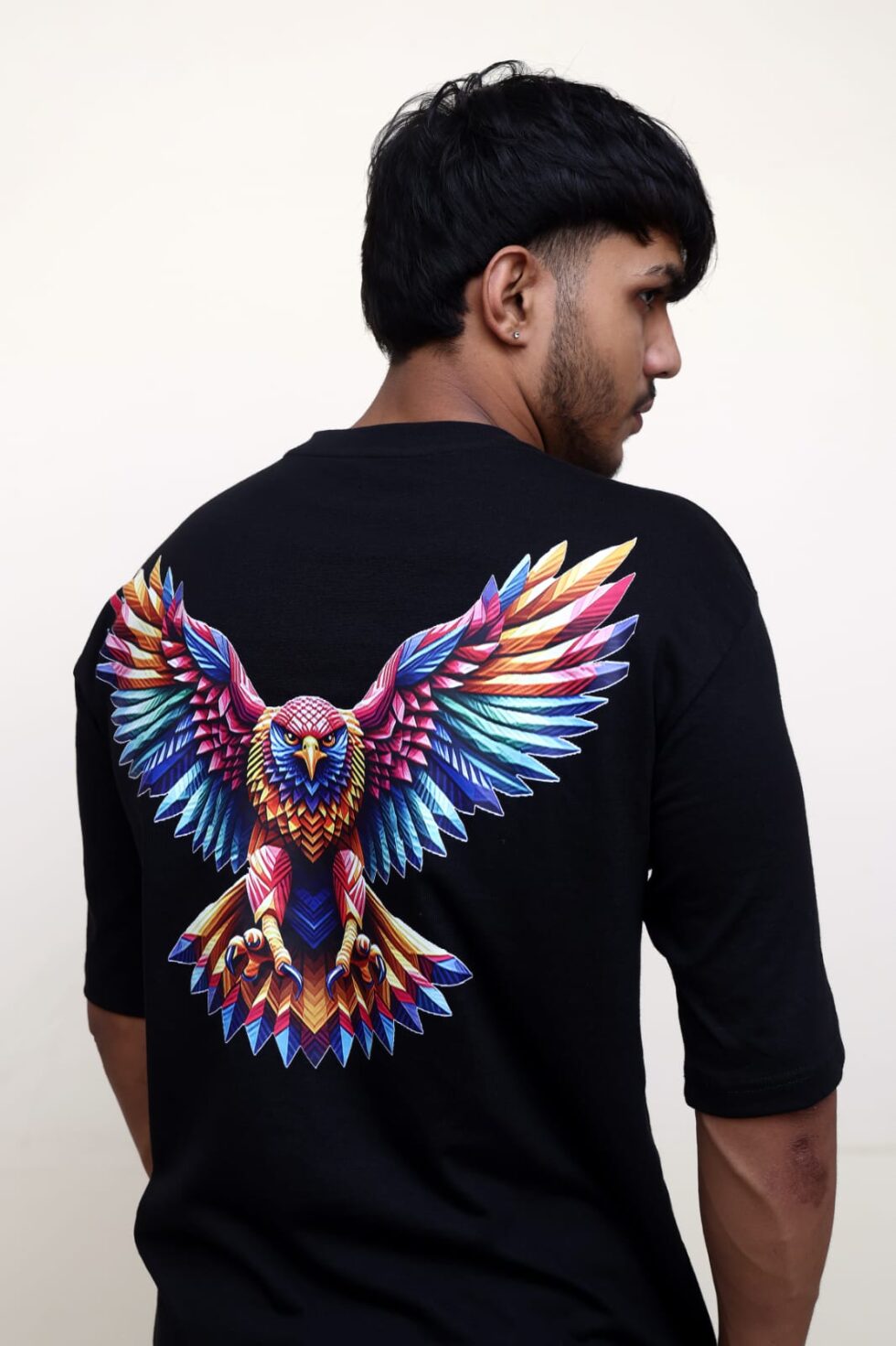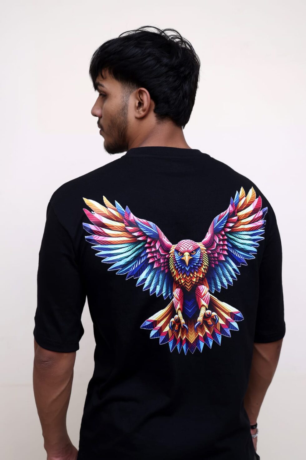Vibrant Multicolor Eagle Artwork printed on the back